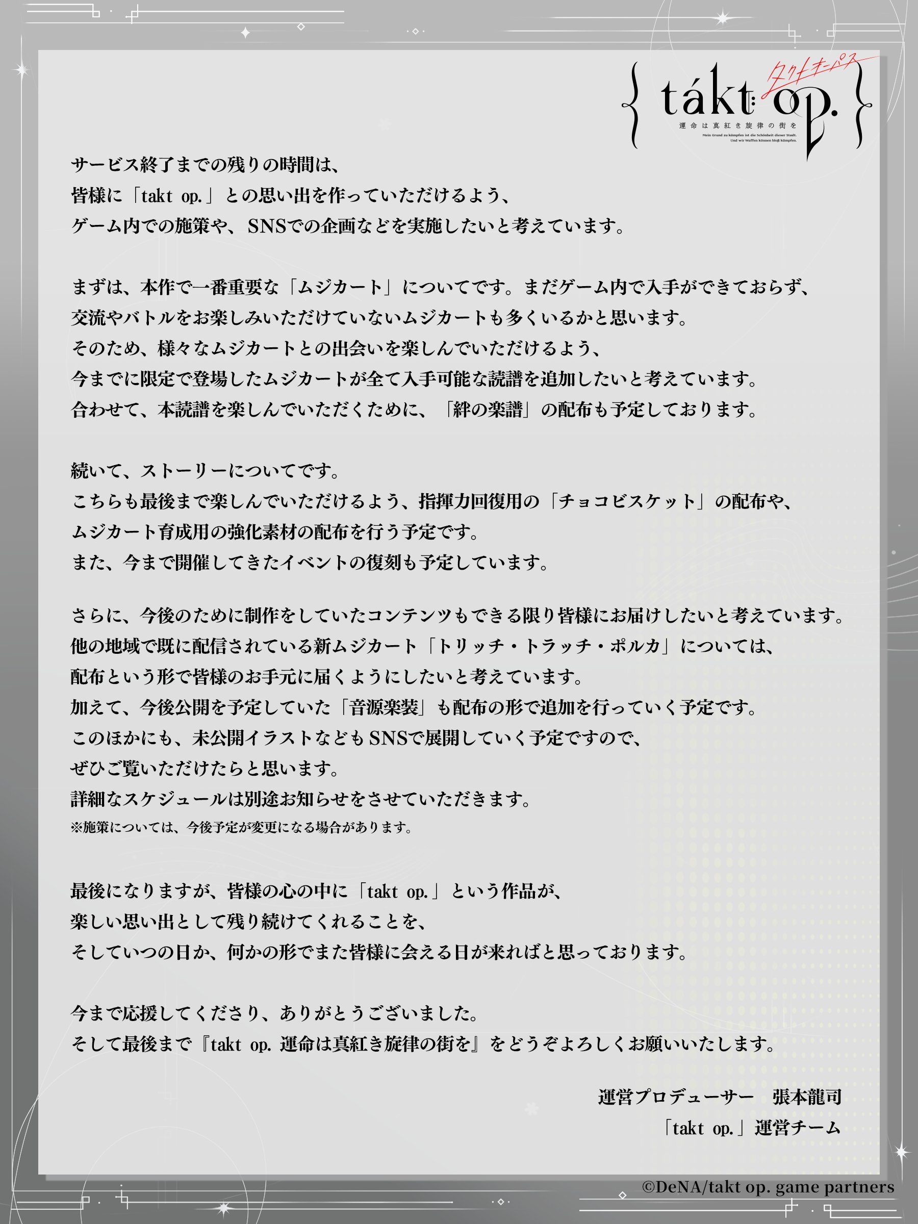 ▼運営レターhttps://t.co/ViCRdzHUCI#takt_op #タクトオーパス pic.twitter.com/2PSiEKQSyz