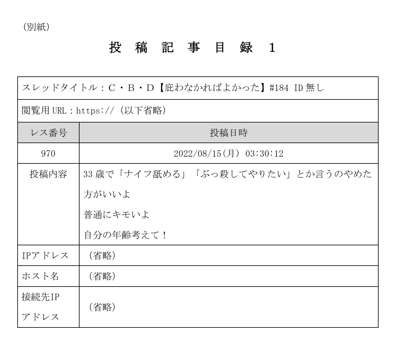 5ちゃんねるの投稿に対する発信者情報開示請求訴訟。
