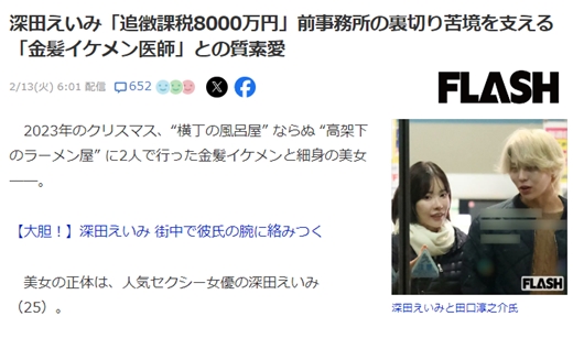 深田えいみ「追徴課税8000万円」前事務所の裏切り苦境を支える「金髪イケメン医師」との質素愛#SmartFLASH #セクシー女優 #事務所 #交際 #医師 #深田えいみhttps://t.co/lYzasOoNu8