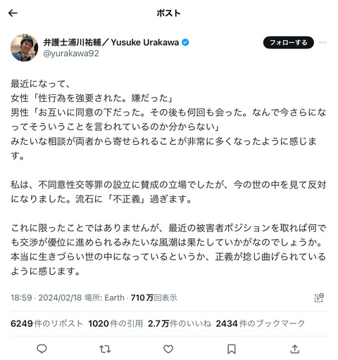 — 弁護士浦川祐輔/Yusuke Urakawa (@yurakawa92) February 18, 2024