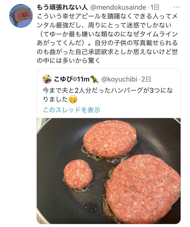 【悲報】ママさん「今まで夫と2人分だったハンバーグが3つになりました」👈炎上🔥 Twitter Facebook はてブ LINE コピー 2024.02.22 スポンサーリンク 1:2024/02/21(水) 19:00:07.827 ID:Xv1FFC7g0.net転載元スレッド:https://viper.2ch.sc/test/read.cgi/news4vip/1708509607/ 続きを読む