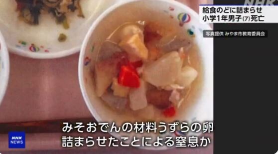 給食の「みそおでん」に入っている「うずらの卵」による窒息と推察されるということです。うずらの卵は直径2センチほどでした。