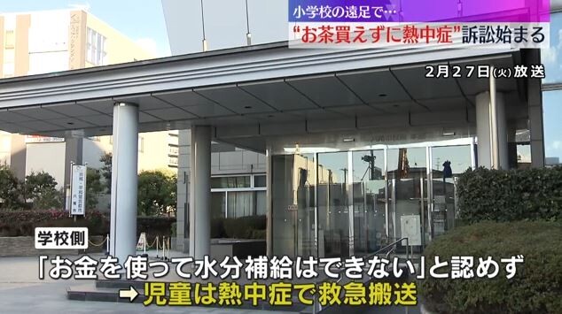 しかし、学校側は「お金を使っての水分補給はできない」と認めず、小学校に到着後に体調不良となり、その後、38℃を超える高熱を出して救急搬送されました。女子児童はその後回復しましたが、「熱中症」と診断されたということです。