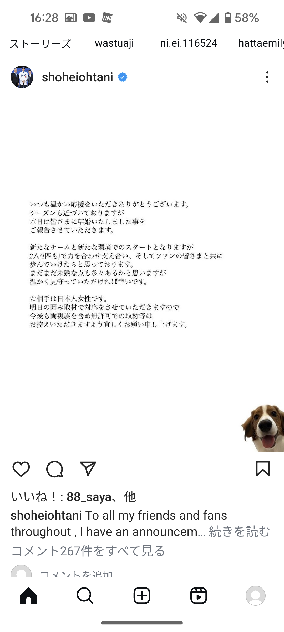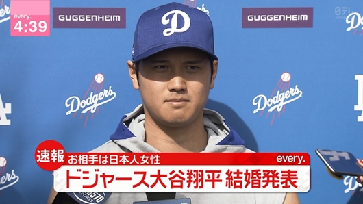 ドジャースの大谷翔平投手が29日、自身のSNSを通じ、結婚したことを発表した。
