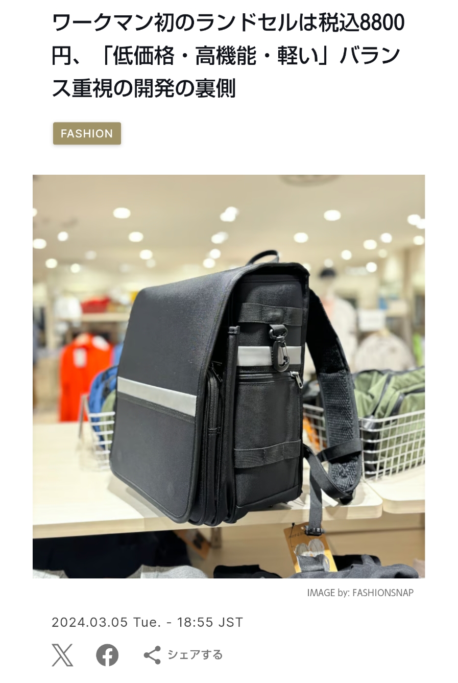【新着】ワークマン、初となるランドセルの開発秘話とは?小学生の子を持つ社員が自身の要望を具現化。 https://t.co/iyee3MBAgk