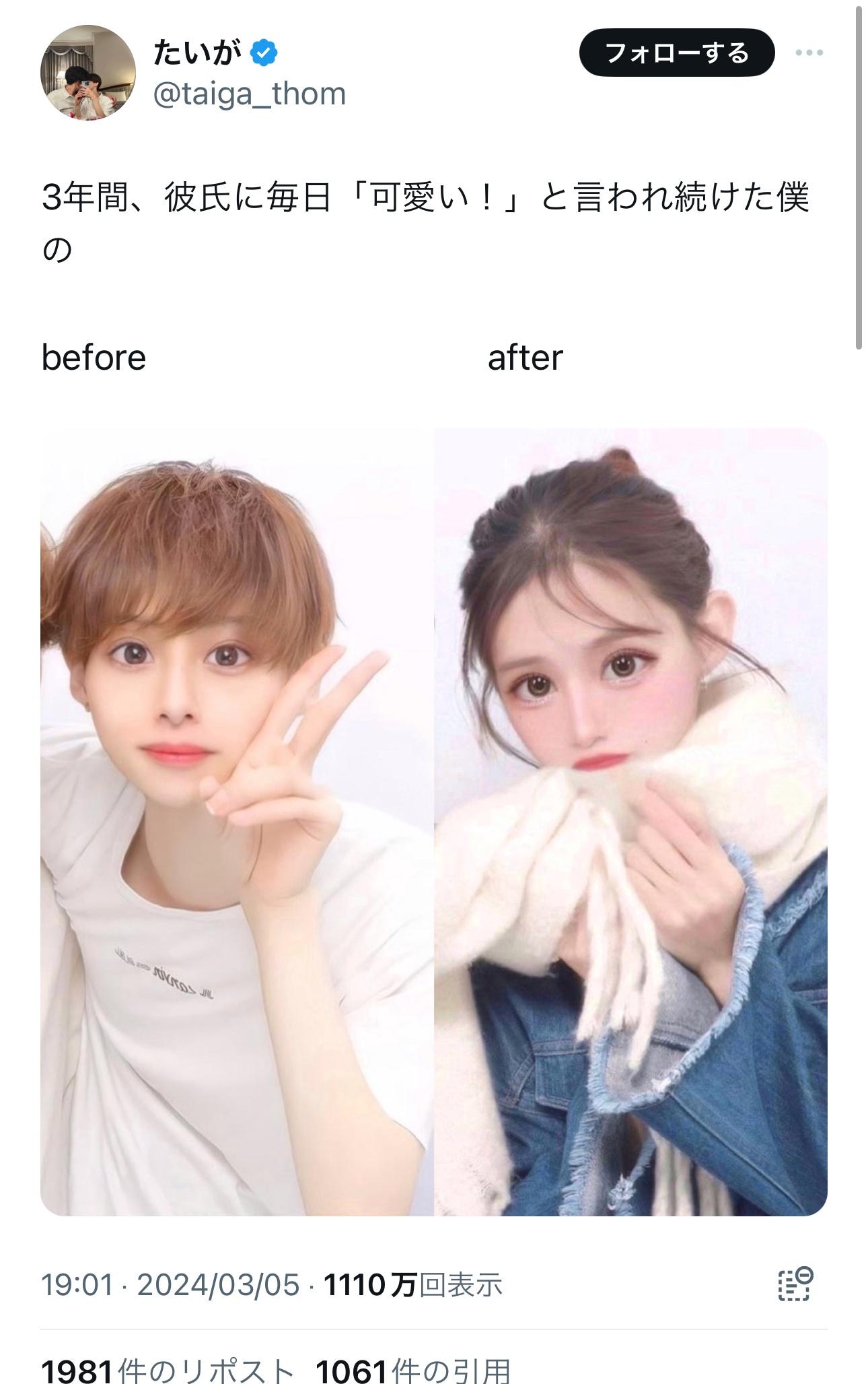 【衝撃】まんさん、3年間彼氏に可愛いと言われ続けた結果、垢抜けてとんでもない美女になる(画像) Twitter Facebook はてブ LINE コピー 2024.03.07 スポンサーリンク 1:それでも動く名無し:2024/03/06(水) 16:16:33.64 5:それでも動く名無し:2024/03/06(水) 16:17:53.42 ボーイッシュ時代の方がええやん 9:それでも動く名無し:2024/03/06(水) 16:20:18.47 マンさんやんけ すごいな 続きを読む