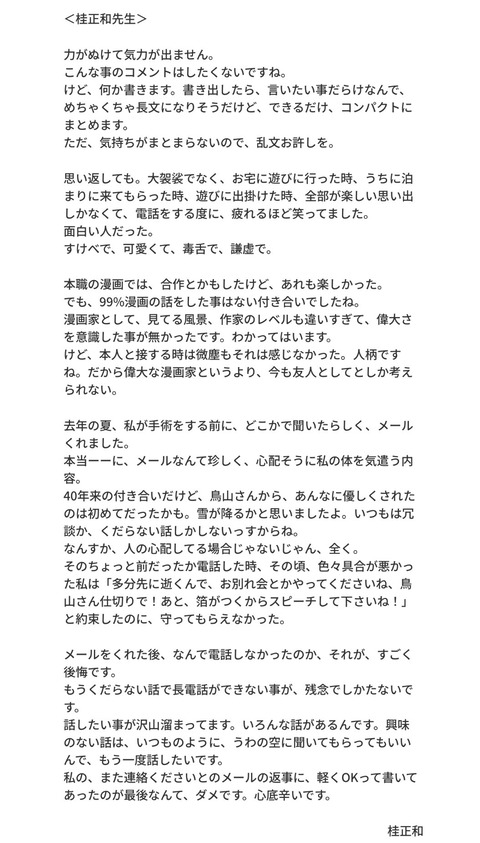 【速報】尾田栄一郎、桂正和、岸本斉史、堀井雄二がコメント Twitter Facebook はてブ LINE コピー 2024.03.08 スポンサーリンク 1:以下、?ちゃんねるからVIPがお送りします:2024/03/08(金) 14:19:24.422 ID:UTIFSBrd0 2:以下、?ちゃんねるからVIPがお送りします:2024/03/08(金) 14:19:59.332 ID:zpGfh1Jqr 永井産業 続きを読む