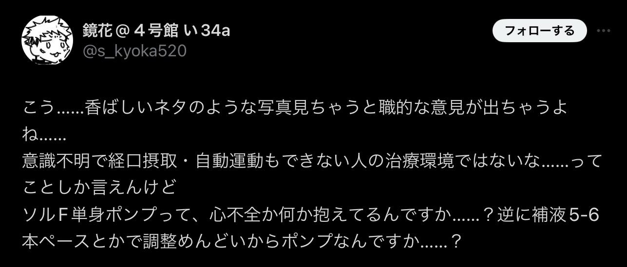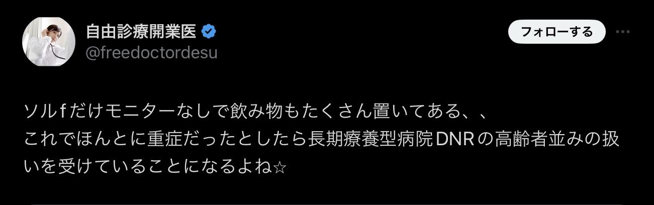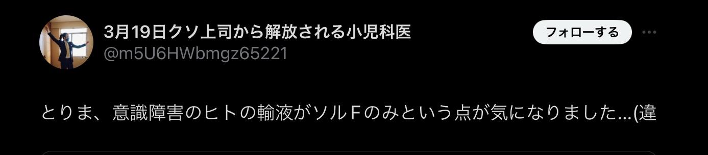 点滴の種類から脱水症状だとバレるwww