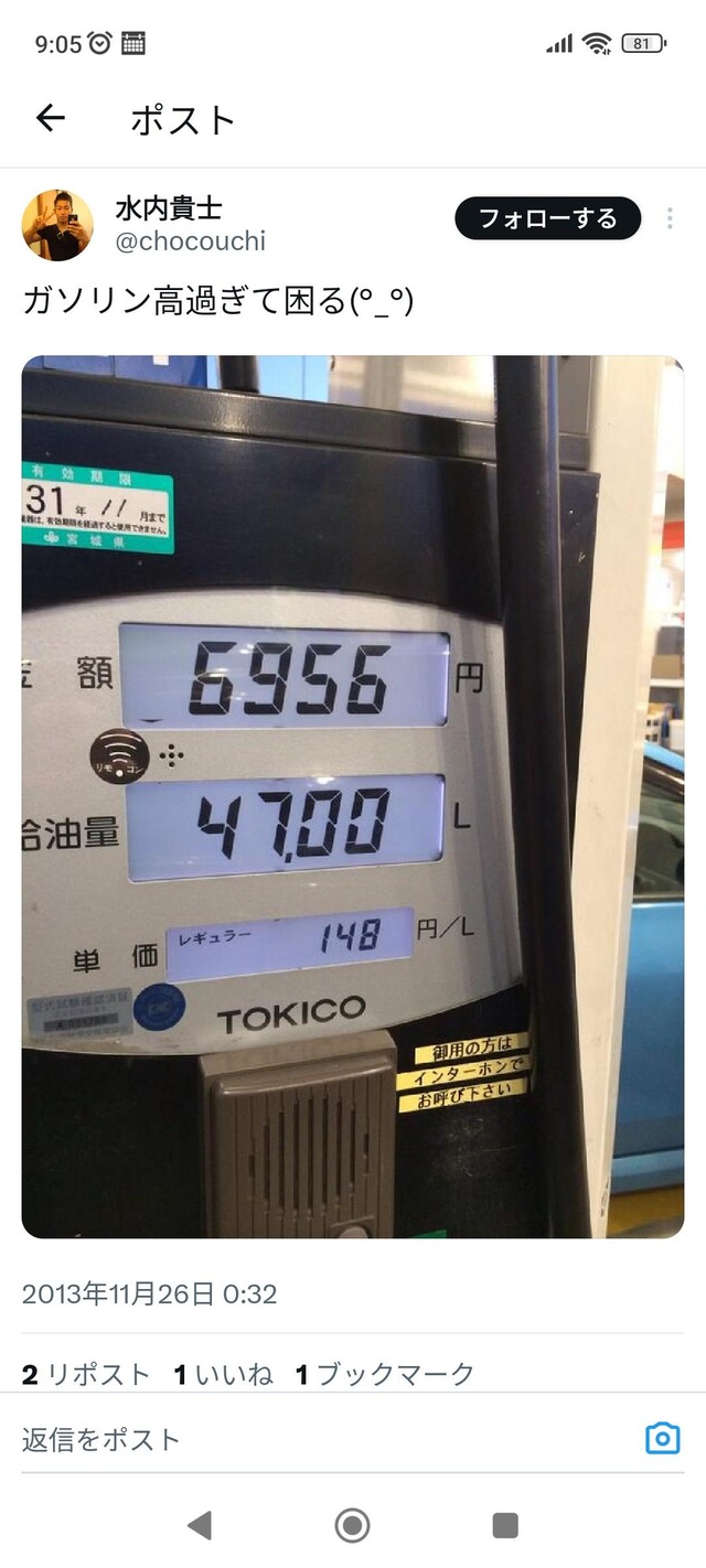 【悲報】10年前のガソリン代、安すぎる、レギュラー148円 Twitter Facebook はてブ LINE コピー 2024.03.10 スポンサーリンク 1: 名無しさん@おーぷん 24/03/10(日) 09:06:47 ID:Bs3J これはアカン!!という画像貼っていけ 続きを読む