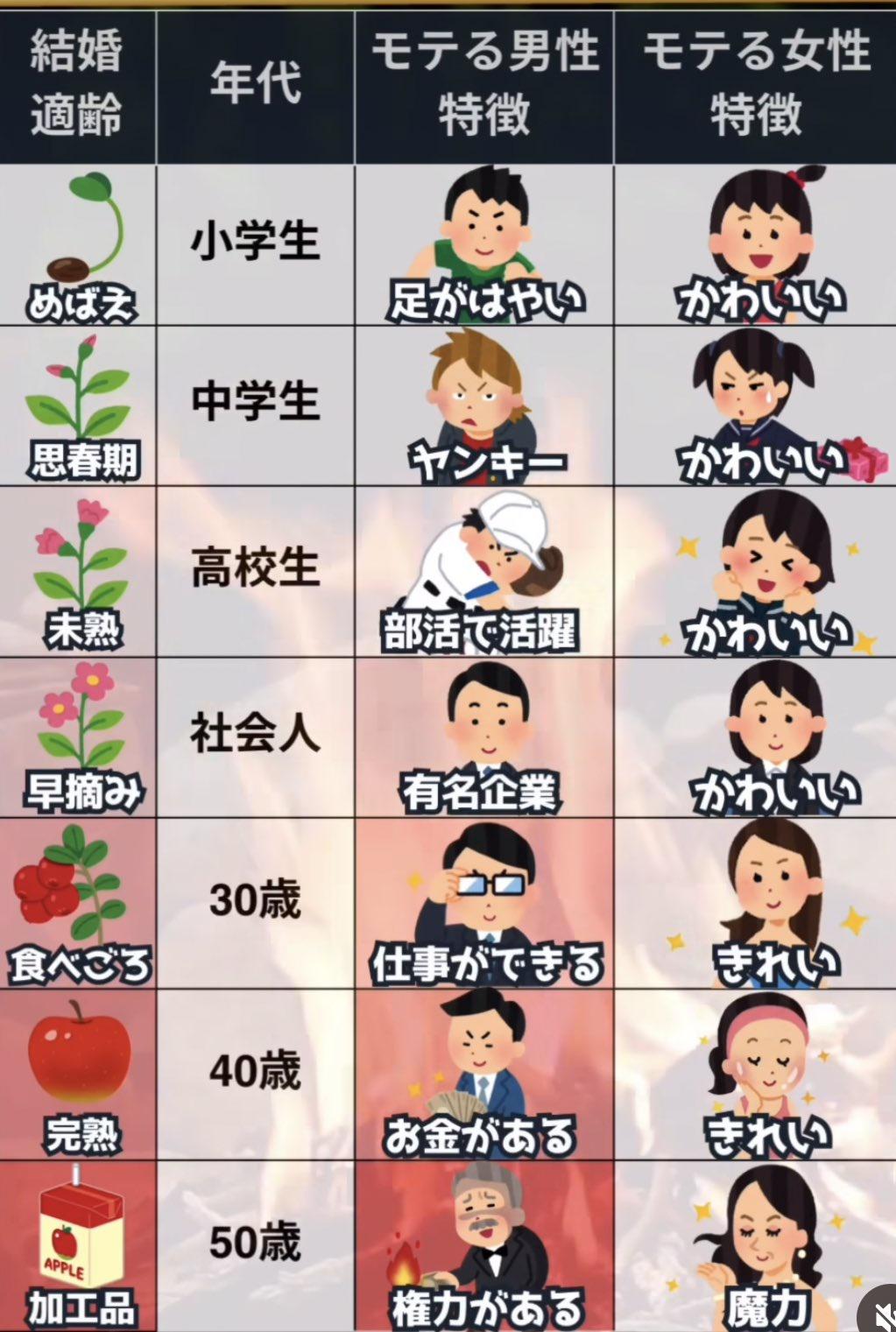 【画像】女性さん「年齢別のモテる特徴の表がこれ。酷すぎワロタ」 Twitter Facebook はてブ LINE コピー 2024.03.16 スポンサーリンク 1:以下、?ちゃんねるからVIPがお送りします:2024/03/15(金) 21:27:31.156 ID:/3Wi+jma0.net 3:以下、?ちゃんねるからVIPがお送りします:2024/03/15(金) 21:28:41.712 ID:4UmGz5WYd.net 女も魔法使いになるんだな 6:以下、?ちゃんねるからVIPがお送りします:2024/03/15(金) 21:29:55.022 ID:AwNu+4QY0.net ヒエラルキーが高いやつがモテるってだけの話だな 続きを読む