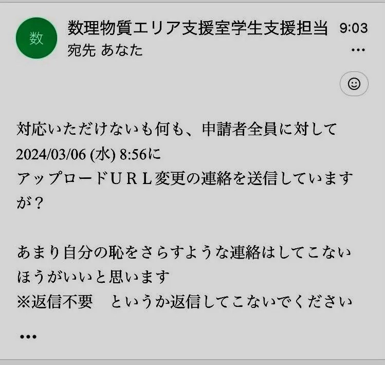 大学からのメールに対し、Xでは「恥さらしなのは数理物質エリア支援室」「なにをどうしてこの文章でメール送れるのか理解できない」など批判が多く寄せられた。