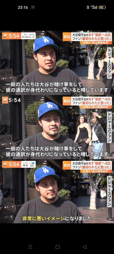 【悲報】ドジャースファン「アメリカの一般人は大谷が賭博をして通訳が身代わりになったと思っている」 (※画像あり) Twitter Facebook はてブ LINE コピー 2024.03.25 スポンサーリンク 1:それでも動く名無し:2024/03/25(月) 23:18:47.67 ID:7NfJyXsG0 3:それでも動く名無し:2024/03/25(月) 23:19:37.50 ID:8RpIQ7Ua0 日本人「大谷が賭博なんてするわけない!水原が全て悪い!」 続きを読む