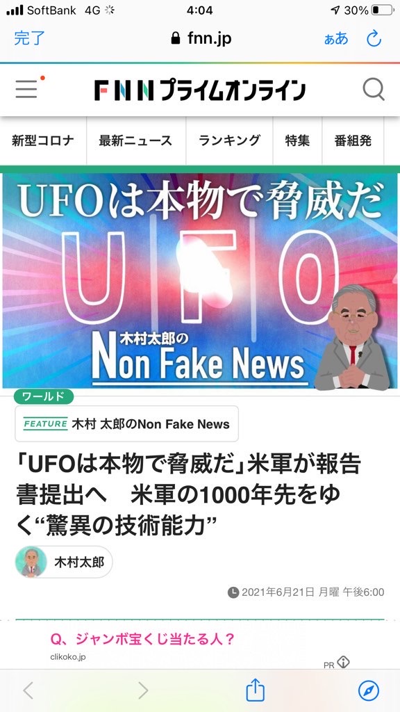 しかし、軍用の熱感知レーダーなど探知技術の発展でUFOの軌跡を正確に捉えられるようになった。ここ数年の間に米海軍が記録しただけでもその数は120回に上り、その軌跡も次第に分かってきた。その性能は、時速約2万キロ。推進装置や翼もないのに空中や海中を自由に動き回り、地球の重力を遮断する能力があると米軍は推定する。米軍の技術者は、現在の米軍の100年から1000年先の技術能力を持っていると推測している。