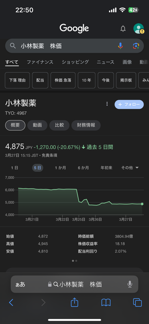 【画像】小林製薬の株価、逝く Twitter Facebook はてブ LINE コピー 2024.03.28 スポンサーリンク 1 : 以下、?ちゃんねるからVIPがお送りします :2024/03/27(水) 22:51:16.252 ID:aqRoEQxc0.net転載元スレッド:https://viper.2ch.sc/test/read.cgi/news4vip/1711547476/ 続きを読む