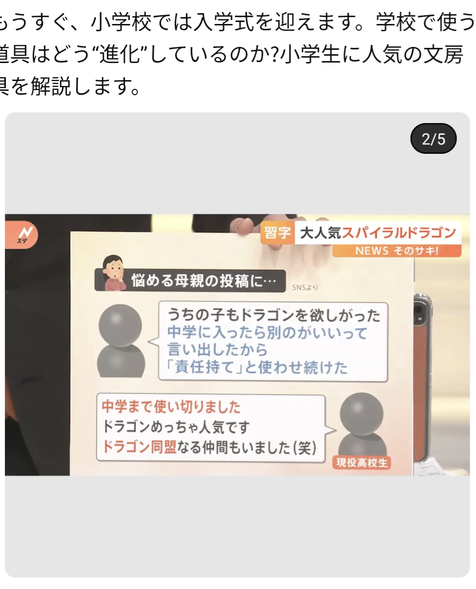 “大きくなっても使う?”「習字セット」をめぐる親子の攻防も…人気の“スパイラルドラゴン”とは?【解説】
