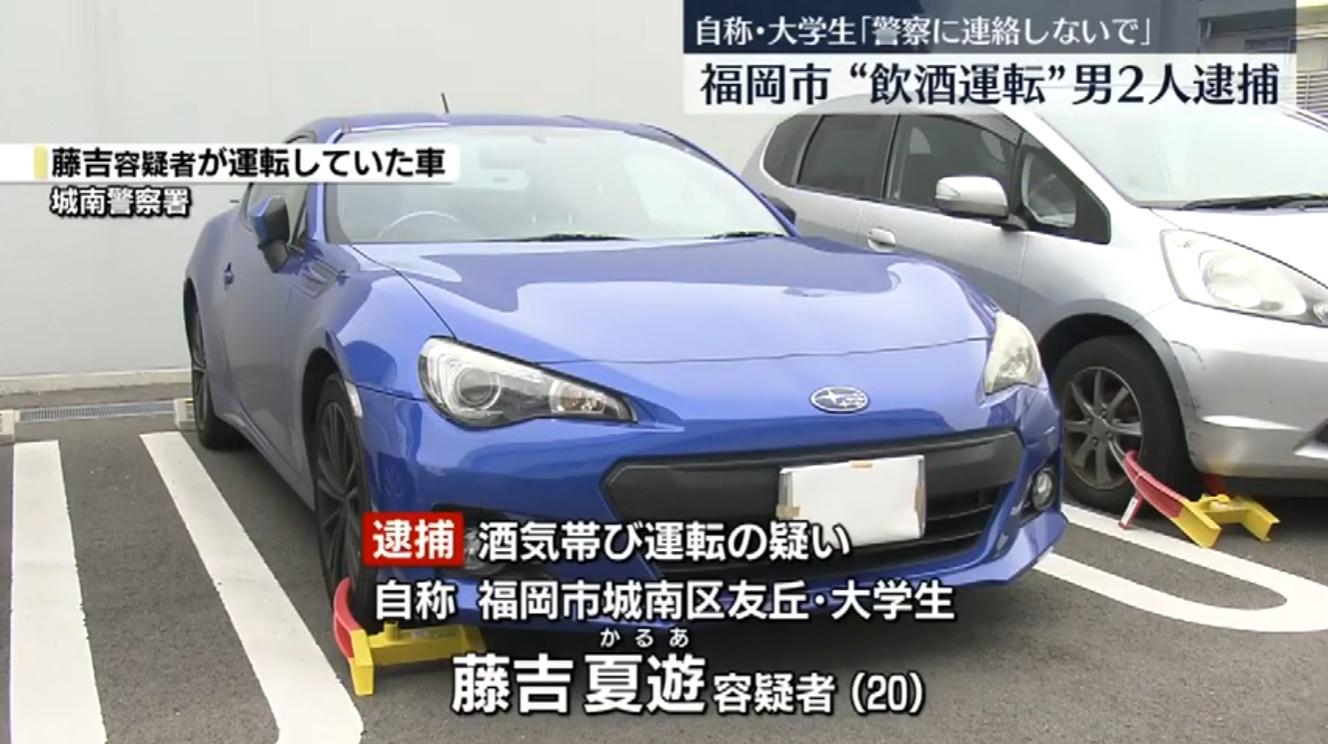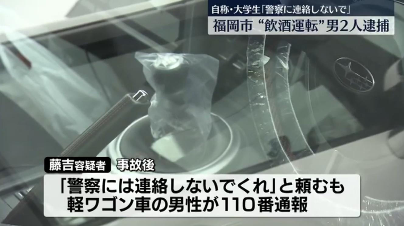 「警察には連絡しないで」飲酒運転で追突事故の疑い 20歳の自称・大学生を逮捕 福岡