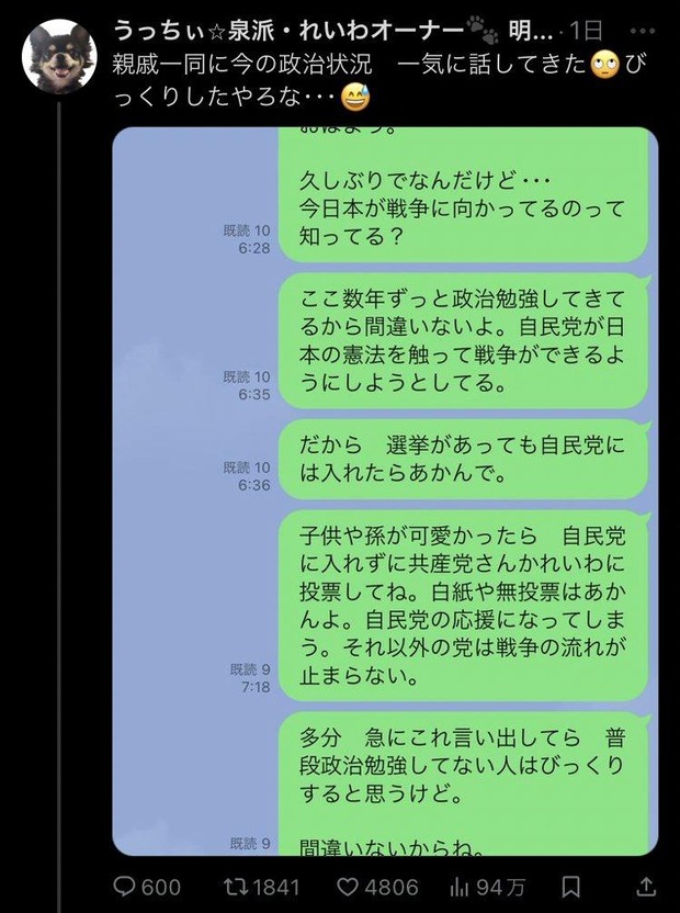 【画像】れいわ支持者「親戚一同に今の政治状況 一気に話してきた」 Twitter Facebook はてブ LINE コピー 2024.04.15 スポンサーリンク 1 : 名無しさん@涙目です。 :2024/04/15(月) 14:03:23.13 ID:uRMCNdYH0●.net BE:135853815-PLT(13000)親戚一同に今の政治状況 一気に話してきた🙄びっくりしたやろな・・・😅 pic.twitter.com/vaJ0djkgNg— うっちぃ⭐︎泉派・れいわオーナー🐾 明石市民 (@ucchymom) April 13, 2024転載元スレッド:https://hayabusa3.2ch.sc/test/read.cgi/news/1713157403/ 続きを読む