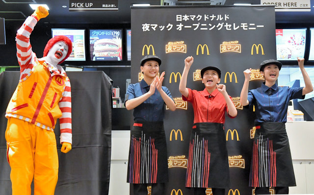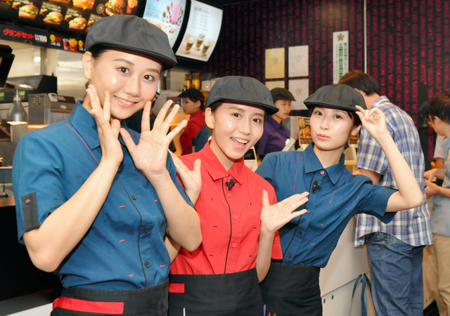 「夜マック」の先行販売会に招かれたSKE48の(左から)古畑奈和さん、大場美奈さん、高柳明音さん