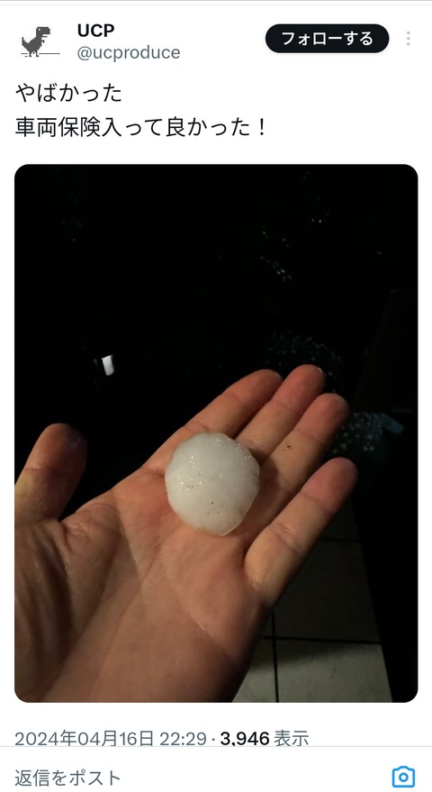 【悲報】さっきの関西のゲリラ豪雨、一部地域でガチで大粒の雹が降り注ぎ車がボコボコになり阿鼻叫喚の地獄絵図にwwwwwwwww