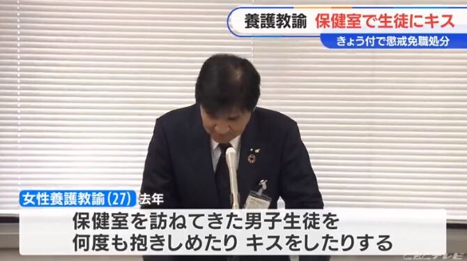 中学校の保健室で、男子生徒を抱きしめたりキスをしたりなどした、27歳の女性養護教諭が懲戒免職処分になりました。