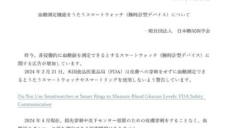 血糖測定機能をうたうスマートウォッチ(腕時計型デバイス)について