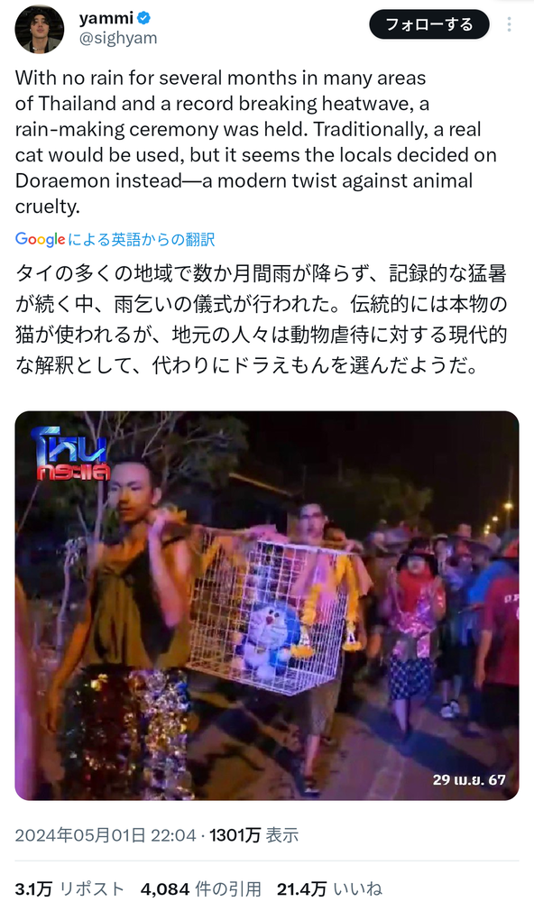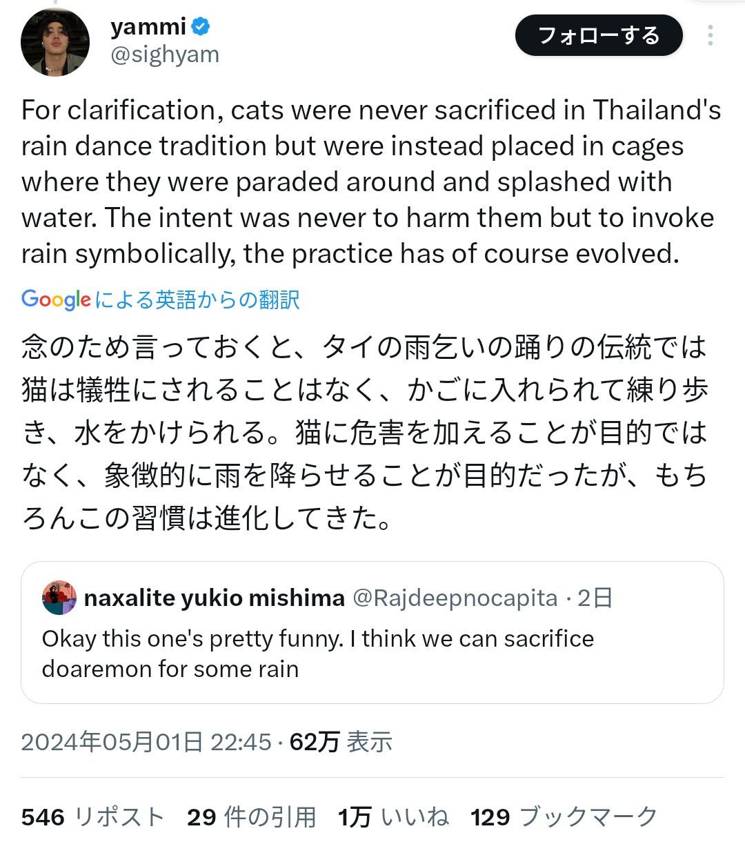 本来の生贄はメス猫だからドラミ使えとか笑うわ