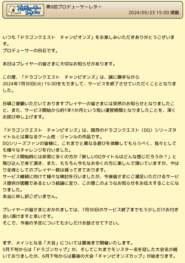 『ドラゴンクエスト チャンピオンズ』を遊んでくださっている皆さまへ、プロデューサーの白石よりメッセージがございます。