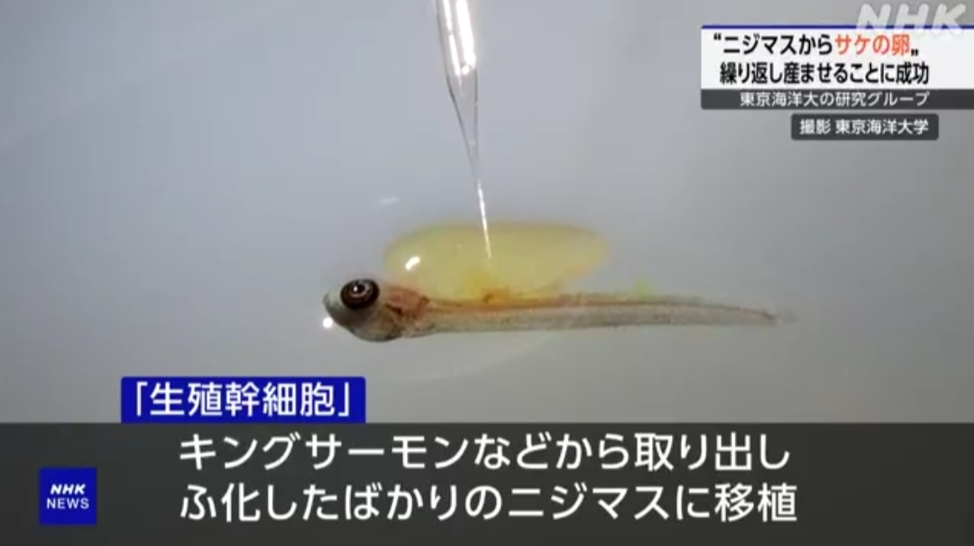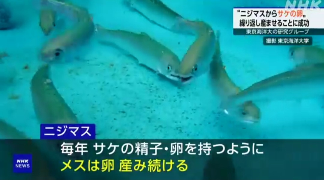 サケは一生に1度しか産卵しませんが、ニジマスにサケの細胞を移植することで、サケの卵を繰り返し産ませることに成功したと東京海洋大学の研究グループが発表しました。サケの養殖の効率化や資源の保護などに役立つと期待されています。
