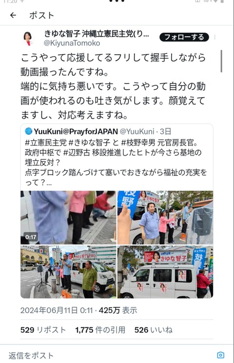 【悲報】立憲民主党「気持ち悪い、顔覚えたぞ」 (※画像あり) Twitter Facebook はてブ LINE コピー 2024.06.12 スポンサーリンク 1:それでも動く名無し 警備員[Lv.4][新芽]:2024/06/12(水) 19:53:11.18 ID:XQljgrtd0 2:それでも動く名無し 警備員[Lv.4][新芽]:2024/06/12(水) 19:53:39.77 ID:XQljgrtd0 怖いんやが 4:それでも動く名無し 警備員[Lv.12]:2024/06/12(水) 19:56:25.98 ID:GvMjHVDN0 え、脅迫? 続きを読む