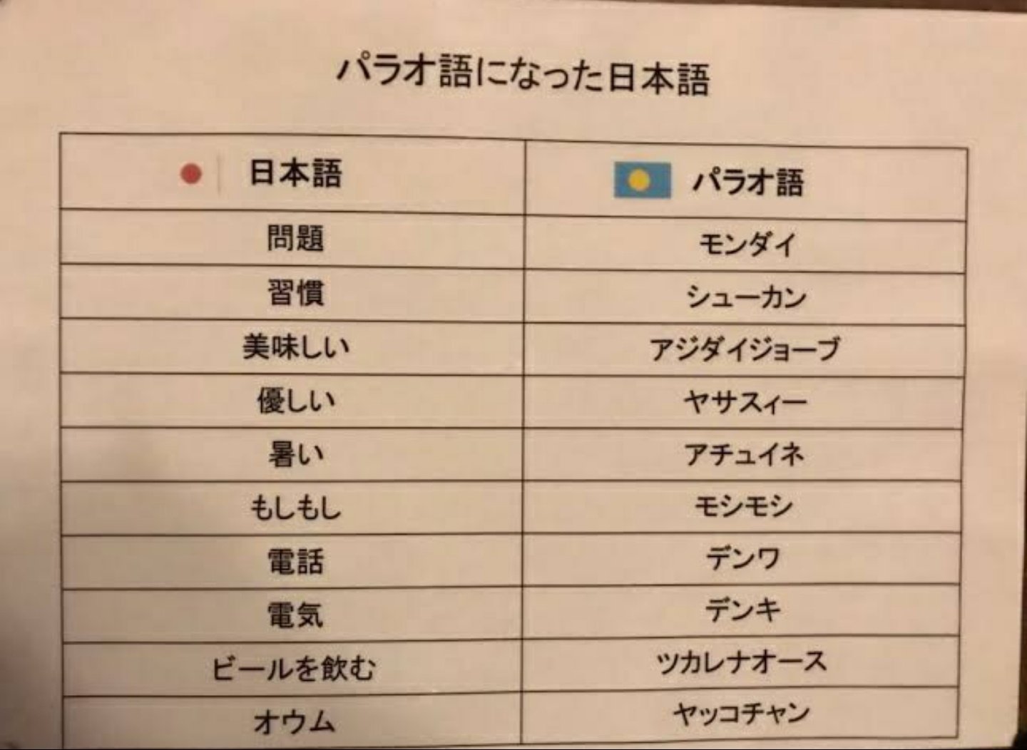 【朗報】パラオ語になった日本語、意外と多い Twitter Facebook はてブ LINE コピー 2022.03.05 スポンサーリンク 1:風吹けば名無し:2022/03/04(金) 21:12:07.30 ID:dPwUFXjx0.net 2:風吹けば名無し:2022/03/04(金) 21:12:49.24 ID:uW/mLD920.net イヤー、アチュイネ 4:風吹けば名無し:2022/03/04(金) 21:13:35.28 ID:ziKnXtHrM.net ツカレナオースしてぇ 5:風吹けば名無し:2022/03/04(金) 21:13:35.38 ID:8oCrVfTp0.net ツカレナオースほんとすき 続きを読む
