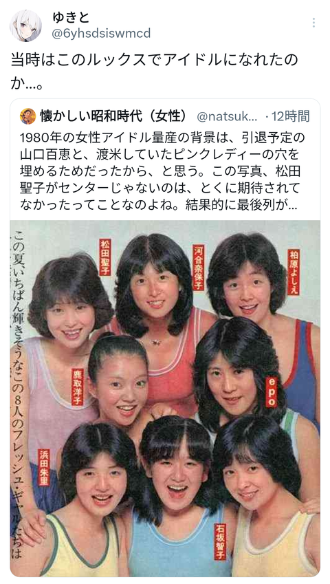 【画像】昔はこのレベルでもアイドルになれたのか→おっさんブチギレwwwwwwwwwwww Twitter Facebook はてブ LINE コピー 2024.06.20 スポンサーリンク 1:それでも動く名無し 警備員[Lv.2][新芽]:2024/06/20(木) 10:07:52.19 ID:+iNYJ+N/0 w 2:それでも動く名無し 警備員[Lv.3][新]:2024/06/20(木) 10:09:09.93 ID:oxhdIuZ70 >>1 マジでFC2でDLしてもすぐに消去するレベルの面々だよな 4:それでも動く名無し 警備員[Lv.3][警]:2024/06/20(木) 10:09:25.87 ID:Pd1AG6b50 河合奈保子もらいますね 続きを読む
