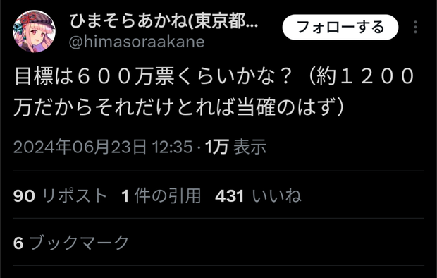 — ひまそらあかね(東京都知事選候補) (@himasoraakane) June 23, 2024