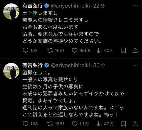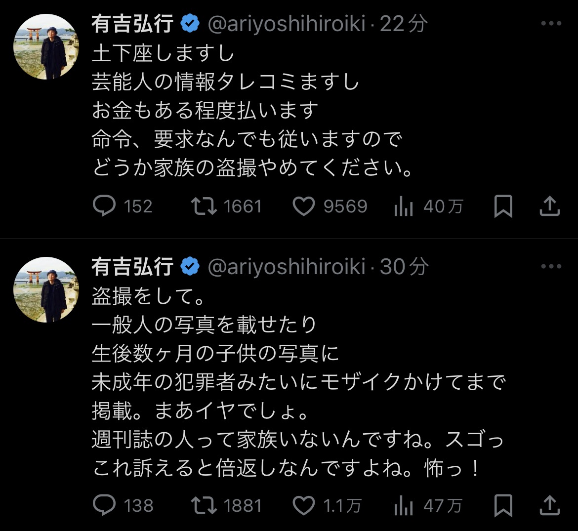 有吉の家族盗撮したら金めっちゃ貰えるし有吉がなんでも言うこと聞いてくれるってマジ?