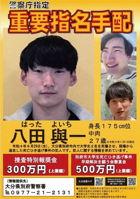 2022年、大分県別府市で起きたひき逃げ事件は29日で発生から2年となります。重要指名手配されている八田與一容疑者について、