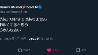 【悲報】海外美少女「わさびって不味いよ。お寿司を不味してるだけ。」←日本人がブチギレし大炎上WWWWWWWWW Twitter Facebook はてブ LINE コピー 2024.07.01 スポンサーリンク 1 : 以下、?ちゃんねるからVIPがお送りします :2024/07/01(月) 06:50:12.213 ID:7F4gfJlnd.netわさびがあまり好きではありませんすしを不味くすると思う本当にごめんなさい— Nanashi Mumei🪶holoEN (@nanashimumei_en) June 29, 2024↓転載元スレッド:https://viper.2ch.sc/test/read.cgi/news4vip/1719784212/ 続きを読む