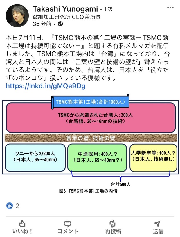 【画像】TSMC社員「日本の理系は役立たずのポンコツ」 Twitter Facebook はてブ LINE コピー 2024.07.12 スポンサーリンク 1 : 以下、?ちゃんねるからVIPがお送りします :2024/07/12(金) 18:47:02.898 ID:XzNAVJUe0.nethttps://jp.linkedin.com/posts/takashi-yunogami-01348457_本日7月11日tsmc熊本の第1工場の実態tsmc熊本工場は持続可能でない-activity-7217153426030305280-5TZD転載元スレッド:https://viper.2ch.sc/test/read.cgi/news4vip/1720777622/ 続きを読む
