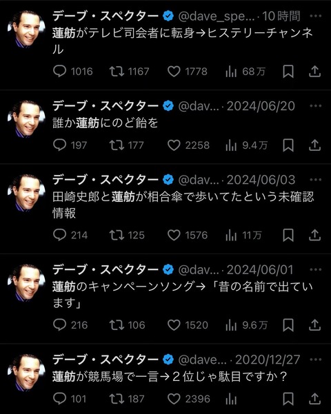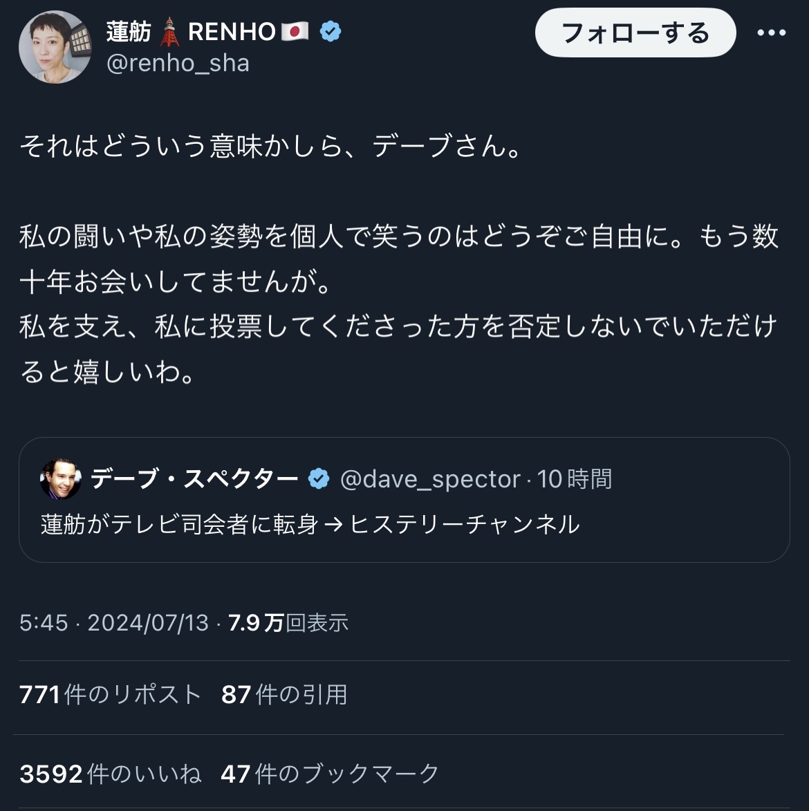 【悲報】蓮舫さん、朝っぱらから今度はデーブスペクターに絡むWMWMWMWMWMWMWMWMWMWMWMWMWMWM Twitter Facebook はてブ LINE コピー 2024.07.13 スポンサーリンク 1:それでも動く名無し 警備員[Lv.3][新芽]:2024/07/13(土) 08:15:40.15 ID:UMcd5cO80 つまらないギャグすらスルーできなくなった模様 2:それでも動く名無し 警備員[Lv.3][新芽]:2024/07/13(土) 08:15:57.57 ID:UMcd5cO80 ほんと落選してから余裕なさすぎて草 3:それでも動く名無し 警備員[Lv.3][新芽]:2024/07/13(土) 08:16:12.84 ID:/XSAFVEX0 今日インスタライブで怒りのお気持ち表明するらしいな 続きを読む