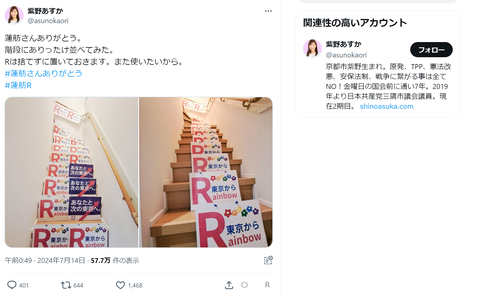 【画像あり】共産党議員さん、蓮舫さんを応援しすぎて家の中が「R」だらけになってしまうwwwwwwwwww