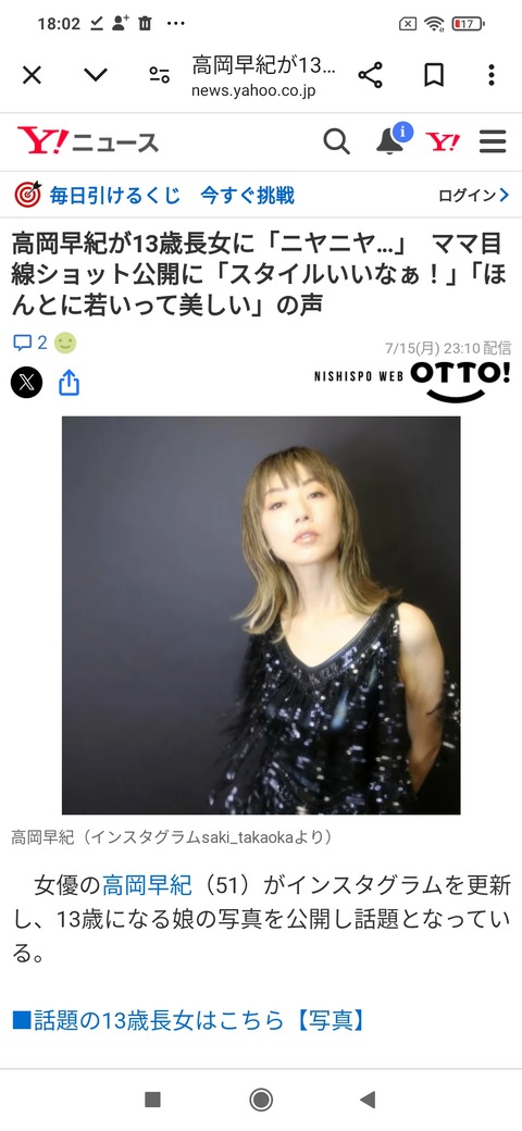 【画像あり】高岡早紀さんの長女(13)のスタイルがよすぎると話題にwwwwwww