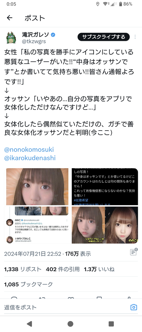 自分を女化した画像をあげただけのおっさん、似過ぎてた女がいちゃもんをつけて炎上wwwwwwwww Twitter Facebook はてブ LINE コピー 2024.07.22 スポンサーリンク 1:それでも動く名無し:2024/07/22(月) 00:16:46.99 ID:QuTyXEG90.net 続きを読む
