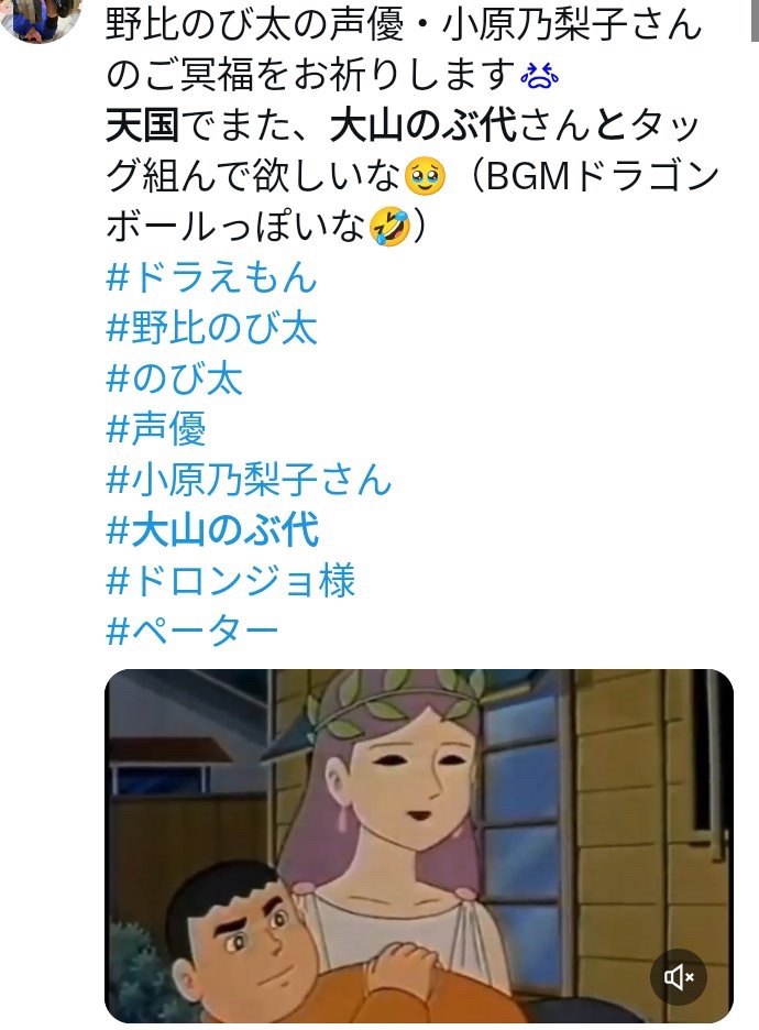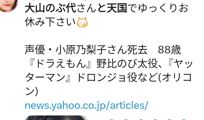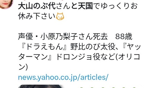 【悲報】大山のぶ代さん、死んだことにされるwwwwwwwwwww Twitter Facebook はてブ LINE コピー 2024.07.23 スポンサーリンク 1:それでも動く名無し 警備員[Lv.7]:2024/07/23(火) 19:57:29.12 ID:gJEWq8RC0 2:それでも動く名無し 警備員[Lv.6][苗]:2024/07/23(火) 19:57:57.17 ID:FyFfpRtl0 草 続きを読む