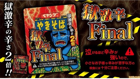 “ペヤング 獄激辛やきそばFinal”は“獄激辛シリーズ”の最新作。その辛さは過去に発売した“ペヤング獄激辛やきそば”の2倍を誇り、涙が止まらないほどの刺激と辛さを存分に堪能できる味わいに、仕上がっているという。