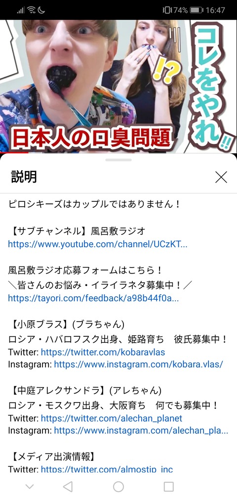 【悲報】ロシア人youtuber「日本人は口臭が臭い」 Twitter Facebook はてブ LINE コピー 2022.03.08 スポンサーリンク 1:風吹けば名無し:2022/03/08(火) 16:50:30.09 ID:2bUT9UIl0.net ↓ 6:風吹けば名無し:2022/03/08(火) 16:51:12.44 ID:Xg4AO8g90.net ブラちゃんいい人やからいじめんな 9:風吹けば名無し:2022/03/08(火) 16:51:42.08 ID:pSzpW34RM.net >>6 だれやねん っていうか自分で動画出してるんやろ 続きを読む