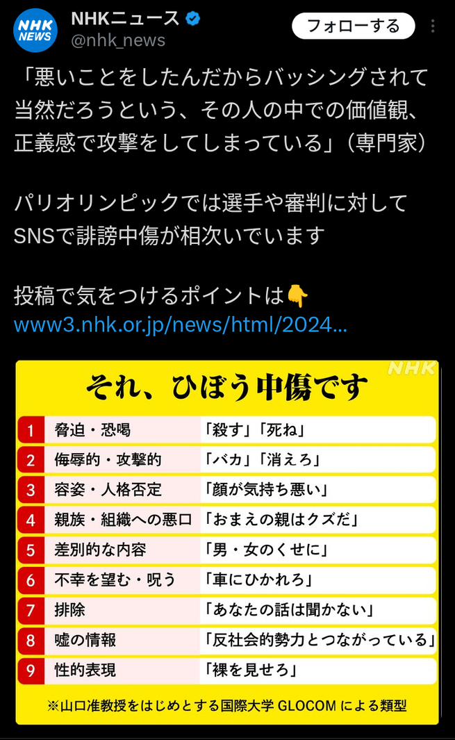 パリオリンピックでは選手や審判に対してSNSで誹謗中傷が相次いでいます