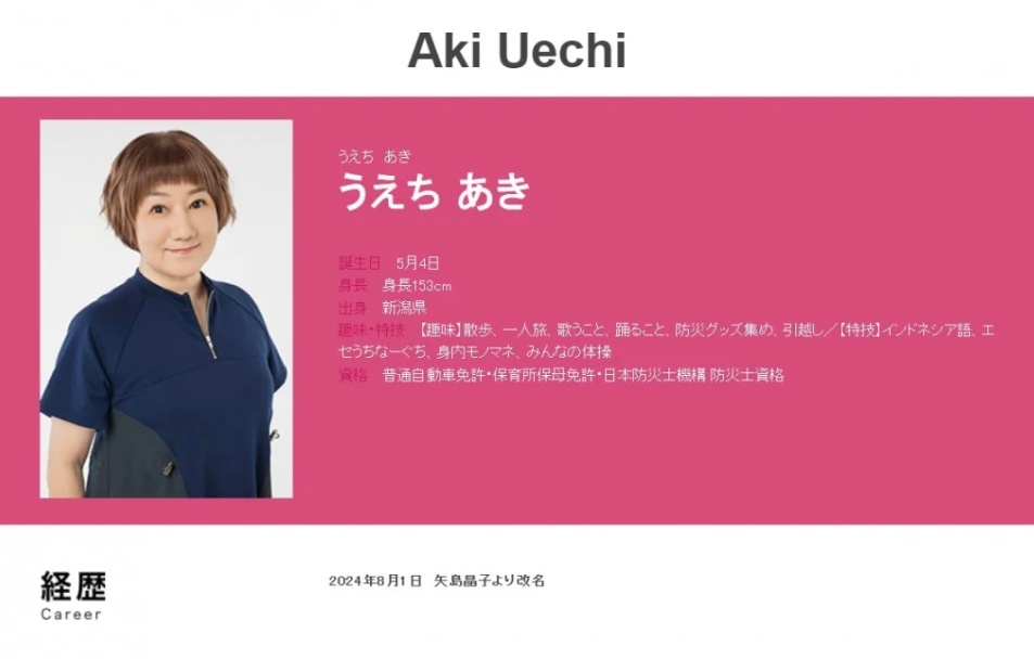 同事務所には8月より所属し、「2024年8月1日 矢島晶子より改名」と報告している。