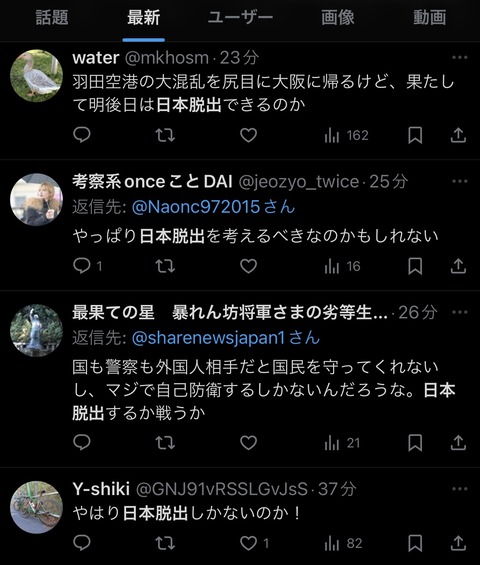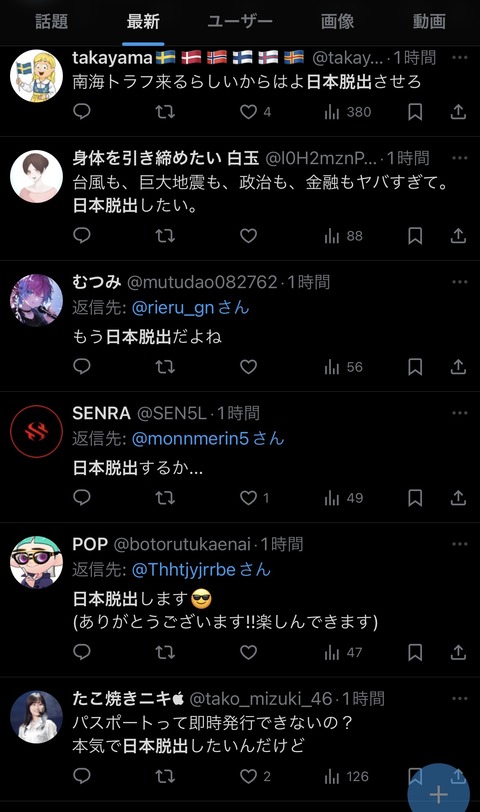 【緊急】日本脱出を真剣に検討する日本人がガチで急増中wwwwwww Twitter Facebook はてブ LINE コピー 2024.08.08 スポンサーリンク 1:名無しさん@涙目です。(茸) [US]:2024/08/08(木) 21:13:19.93 ID:Pr5z7CN10 BE:271912485-2BP(1500) 飛行機チケット高くなりそう 日本に戻ってきたばっかりの俺も検討中 http://5ch.net 2:山下(茸) [US]:2024/08/08(木) 21:13:59.62 ID:ygNEXxia0 どうぞどうぞ 続きを読む