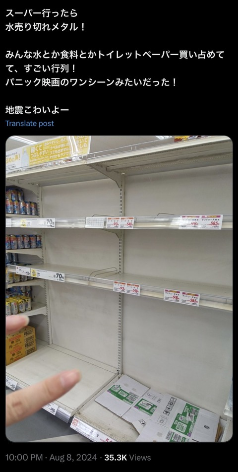 【画像】ジジババ、買い占め行列開始 WVWVWVWVWVWWVWVWVWVWVWVWV WVWVWVWVWVWWVWVWVWVWVWVWV Twitter Facebook はてブ LINE コピー 2024.08.09 スポンサーリンク 1:それでも動く名無し 警備員[Lv.3][新芽]:2024/08/09(金) 11:00:45.90 ID:34uidjK70 2:それでも動く名無し 警備員[Lv.3][新芽]:2024/08/09(金) 11:00:53.98 ID:34uidjK70 これが現実 続きを読む