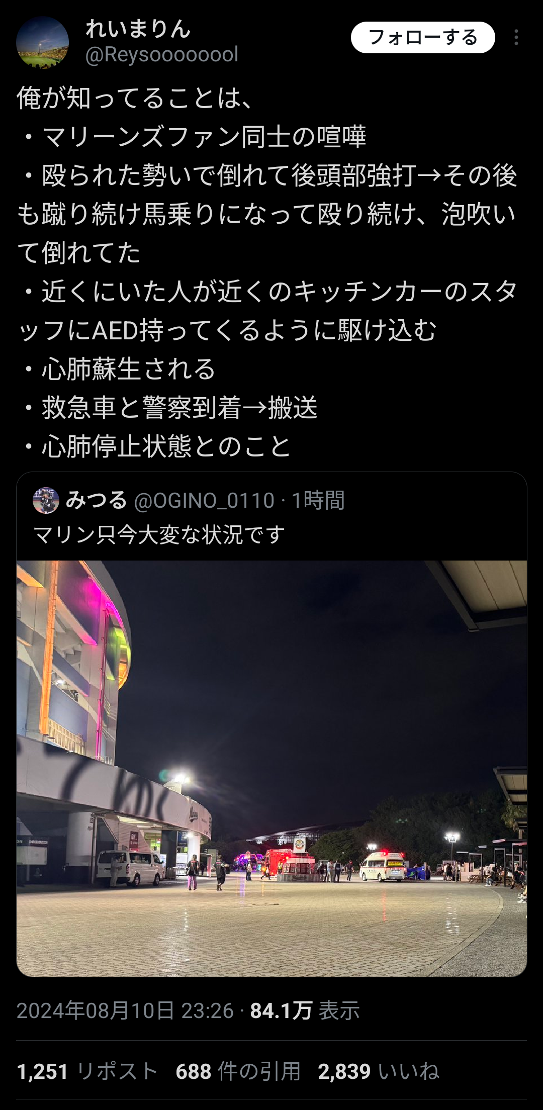 Xで流れてきたけど喧嘩で心肺停止らしい