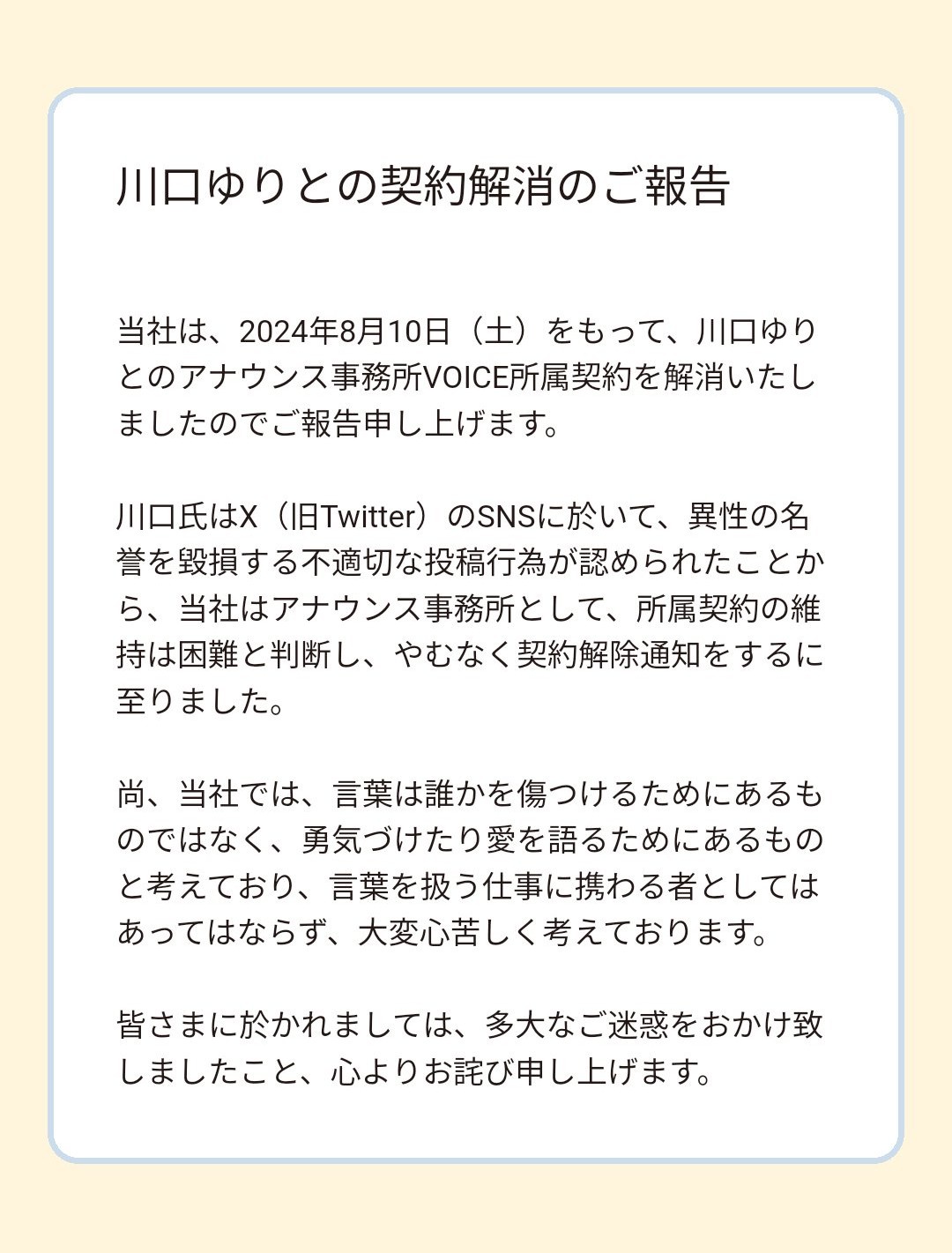 川口ゆりが、講師として提携していた「青山プロダクション」からも契約を解除されたことが分かった。同社は川口に、ハラスメント防止研修講師として複数回依頼していたという。 pic.twitter.com/1qpY0nEhvG