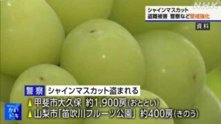 県内では収穫直前のシャインマスカットが大量に盗まれる被害が15日までの2日間に盗まれる被害が相次いで発覚し、警察などが畑や周辺での警戒をいっそう強めています。